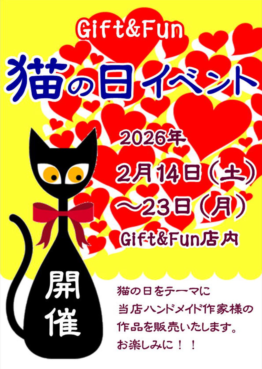 期間中、ハンドメイド作家様の猫の日グッズを集めて店内イベントを開催します。
