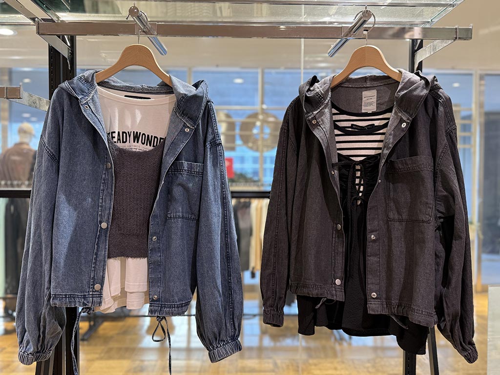 上大岡店はレディースアイテムも充実♪この秋の注目はデニムフードシャツだそう!これからの季節、パーカーのようにさっと羽織れるし、デニム素材だからコーデしやすいのも◎。着回し力抜群で大活躍しそうな1枚です。ぜひチェックしてみてね!