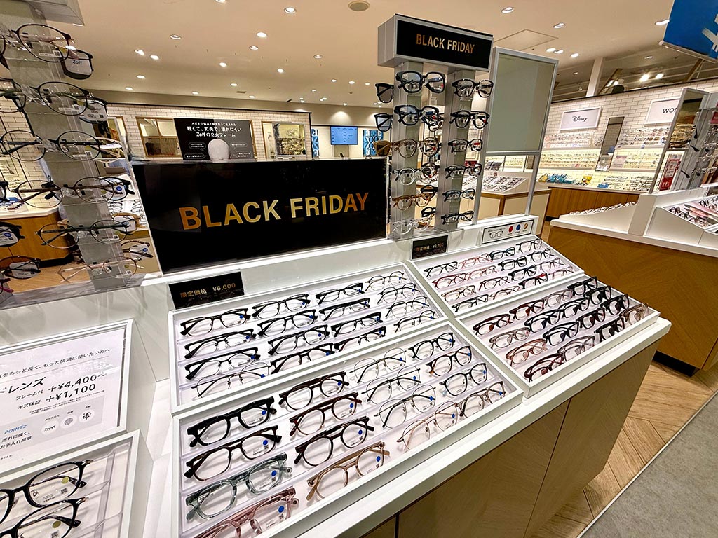 上大岡店では12月4日(木)まで、年に一度の特別企画、ブラックフライデーを開催中だそうです!大人気シリーズ「Zoff SMART」をはじめ、ビジネスシーンで活躍するフレームなどが、この期間だけの限定価格になるそう。メガネ初心者にはもちろん、レパートリーを増やしたい人、気になっていたフレームを試すなら今ですよ~!